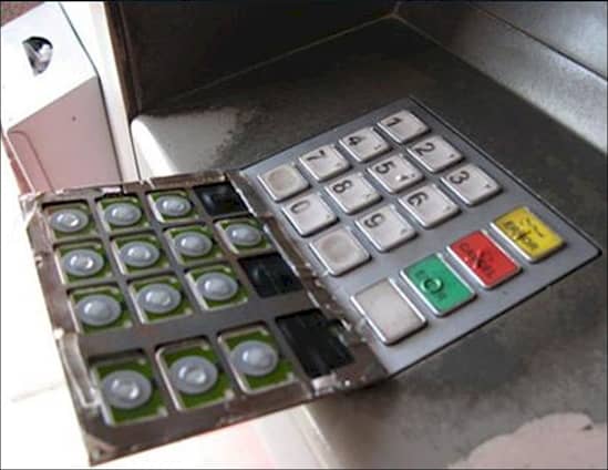 Sommige criminelen monteren een 2de toetsenbord bovenop de originele ingavetoetsen van de pinautomaat. Zo registreren ze je pincode, zonder dat je dat door hebt. Voorkom dit door altijd even door te controleren of het toetsenbord niet extra dik is.